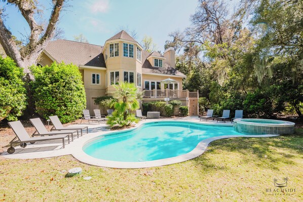 Beautiful property tucked away in Palmetto Dunes on HHI near Fazio golf course, beach, kayaking, fishing and more. Large house with gorgeous wooded backyard with pool/spa. Game room/theater. Large dining room. Bike to anywhere on Island!