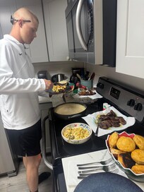 Great stay for a short trip for our family for my son’s graduation at Parris Island. Condo is located in a private community mid island and only a short drive to the beach. Condo had everything we needed. Bedrooms were as described and bathrooms were updated and clean. Nice balcony off from the master BR and LR area we enjoyed in the evenings. The living room is a good size with a nice sized sectional and large dining table which suited us perfectly. The laundry room is small but located adjacent to the kitchen. The kitchen is small but has a nice built in bar with barstools overlooking the living room with a nice open floor plan. The upstairs bedroom has 2 nicely built queen size bunk beds with easy to access stairs and ladder. We had to run the built in fan above the top bed and the living room ceiling fan due to it getting hot at nighttime but it wasn’t a problem. The open spiral staircase was a bit concerning to our small dog who was fearful and didn’t attempt to climb it, as there are only skinny rails with much opening between and the steps are wooden and could be slick to dogs claws with a large drop from the top of the staircase plus the added step-down into the LR. So we ended up having to change some bed arrangements so that my daughter could sleep downstairs with her dog and myself and my husband slept upstairs instead. The gate staff didn’t have our names at main gate at arrival and were not helpful but contacted the owner who resolved this quickly. Great getaway.
