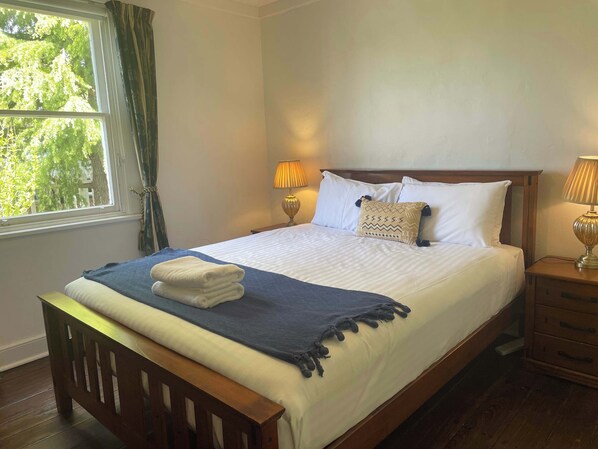 Introducing the wonderful "Bakers Cottage" blends rich history with modern comforts, offering a homely atmosphere that's both charming and convenient. The cottage features three bedrooms—two with queen beds and one with two king singles. A portable cot and highchair are available on request for infants.
