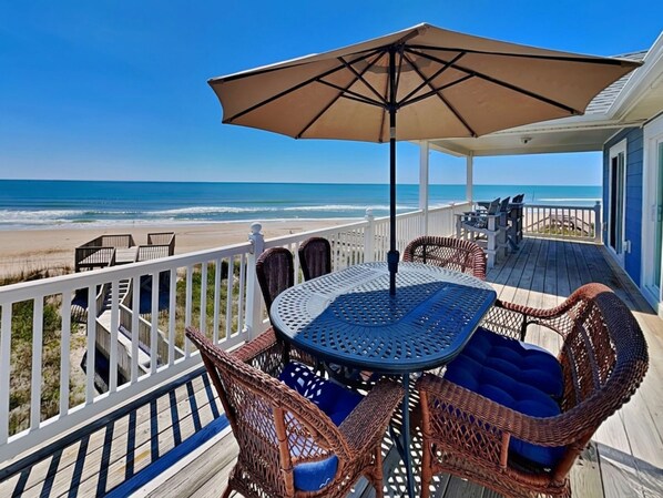 Welcome to Bela Casa, your luxurious oceanfront retreat in Surf City, North Carolina! Located along the pristine coastline, this stunning vacation rental offers unparalleled comfort and convenience for up to 12 guests, featuring five bedrooms and three and a half bathrooms across two floors.