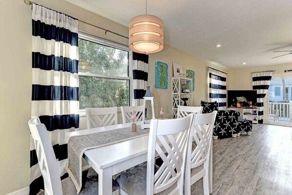 This elevated Anna Maria Island rental is in a fabulous location. Not only are you less than a block to gulf beaches, but you’re just a short walk to the quiet small town center of Holmes Beach. Here you’ll find many dining and shopping options. You can also walk to free trolley stops from “Sugaree”!