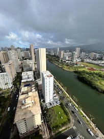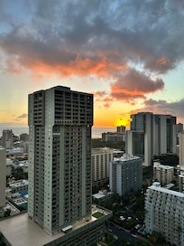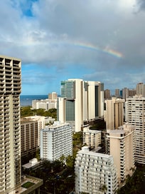 Wonderful unit, Right in the heart of Waikiki with amazing views, close to beach, shopping, bus stop, groceries, restaurants - practically everything. It’s all about location! Pros: Secure building, 180 degree view of Ocean and Mountains, updated unit with A/C, cute decor, lovely plush patio furniture, plenty of pillows and bath towels, comfy bed, lots of hooks to hang clothes/towels, 2 back-pack beach chairs Boogie board, onsite cafe and convenience store plus great communication with Host. Feedback: Door access code did not work, so we had to call for a new code from the Host. Neighbors can be noisy (which is expected in hotel/condos), so I always travel with a noise-machine and recommend one!! The sliding glass door is heavy and very loud when opening/closing as it bumps along the track. I highly recommend the entire building posts a “slide with care” sticker on every unit because it really is disruptive to those below you. Pool is not heated. No beach towels - bring your own!