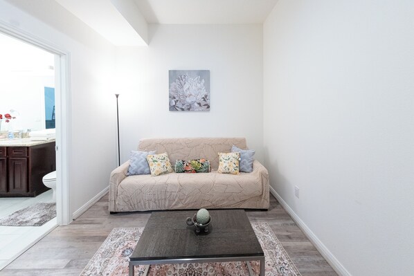 Pre-trip: It was difficult getting a response to inquiries from the host. Upon arrival at unit, was not able to enter due to the link for gaining entry was never sent to me. After speaking with the host remote access was provided and instructions regarding the link. In checking the unit, only 2 bath towels, 2 hand towels and 1 wash cloth were provided for 2 people for 7 days! Contacted the host and final got additional towels on the 3rd day. Kitchen essentials were described as "basic essentials;" they were basic: 1 each of large, medium small pots and 1 very small skillet that could only be used for cooking 1 egg. Fridge had ice maker but wasn't installed. One corner of the rug in the living area was turned up which made it a tripping hazard. The bed described as "king-size" isn't. Overall stay was okay; however, upgrades need to be done to improve the unit.