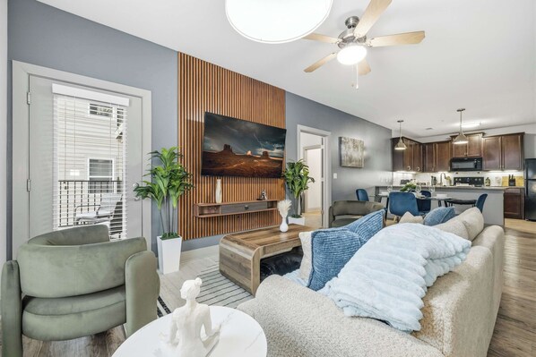 Alle værelser hos March Madness Stay|Chic 2BR+Free Prkng Near DT byder på faciliteter som aircondition samt andre goder som kontorer og spiseborde.