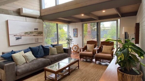 This light filled oasis, offers open and airy living spaces which are drenched in natural light, creating a warm and welcoming ambiance. Embrace the charm of a crackling fireplace during cooler evenings, creating the perfect setting for relaxation and storytelling. A well appointed kitchen and four spacious bedrooms offer restful nights and comfortable accommodations for all guests. Step onto the patio to soak up the sun, have a BBQ, or simply unwind with loved ones. This property features an outdoor shower, great to utilise after exploring Inverloch's wonderful beaches!