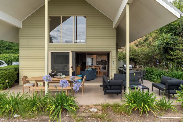 The large modern kitchen is well kitted out and is perfect for 8 guests to host a dinner party. We have a large dining table inside that can seat 8, two outdoor tables (one seats 8, another seats 6). In the morning wake up to freshly made coffee at the press of a button with our Breville Nespresso Machine, and enjoy making breakfast with our high end Kitchenaid appliances.