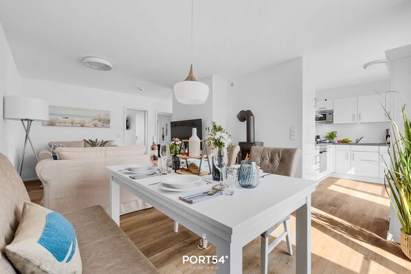 Feriebolig ved stranden med køkken og terrasse