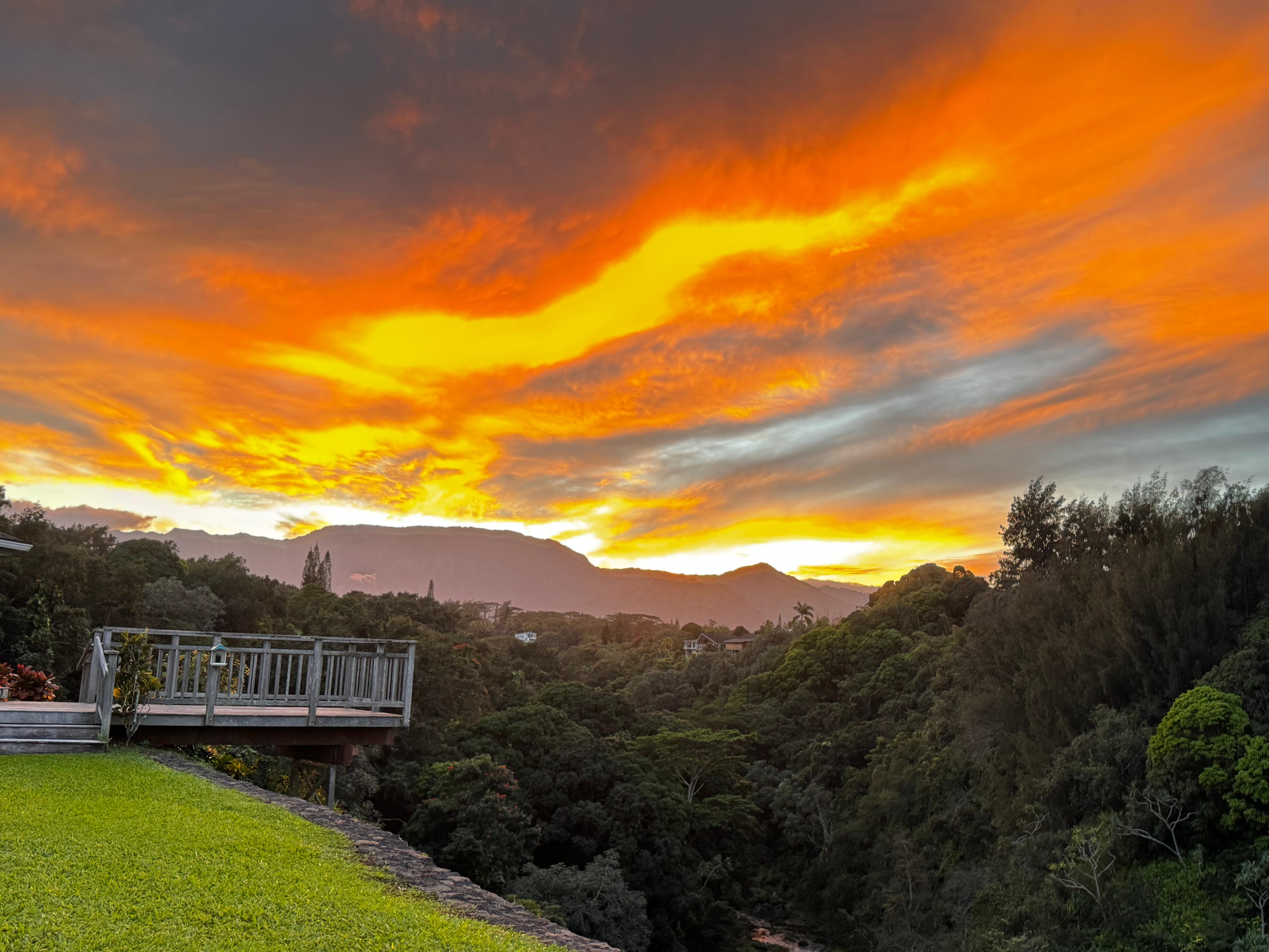 Dette plantage-stilhjem ligger højt oppe på en vulkansk højderyg med uberørt 360-graders udsigt over havet, dalen, bjergene, vandfaldene og floden nedenfor. Dalen i sig selv er hjemsted for adskillige gamle 'heiaus' eller 'tilbedelsessteder', så hellig var kun højpræstene og høvdingerne tilladt. Tilbage på ejendommen vil du opdage "Kahelelani" eller "Stairway To Heaven", hvor du kan picnic, meditere eller blot se det åndedrættende skønhed fra dette unikke observationspunkt 200 meter over flodens dalbund. Eller valgte at slappe af i den utroligt fantastiske Zen Meditation Garden. Dalen er også hjemsted for en National Wildlife Refuge, der beskytter sjældne og truede aviærarter. I løbet af dagen cirkler tropicbirds, fregatter, albatross og nenes højt over hjemmet som for at danne en glorie. Og om aftenen, under en gigantisk kuppel af stjerneklar vildmark, kan du flyve i søvn til melodien i de nærliggende vandfald. En af de mest unikke og uberørte egenskaber på planeten - Kauai på sit bedste!