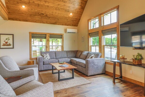 Escape to lakefront luxury at our Modern 2370 sq.ft. cabin, a perfect family retreat for up to 8 guests. Indulge in the fully appointed modern farmhouse kitchen, three bedrooms, and 3.5 baths featuring Grohe showers and tubs. With a 2 king bed, two en-suites, and a charming third bedroom with 2 single twins and a bunk bed, every member of the family will find comfort. Enjoy the convenience of free WiFi, 4 flat-screen TVs, and Suddenlink.