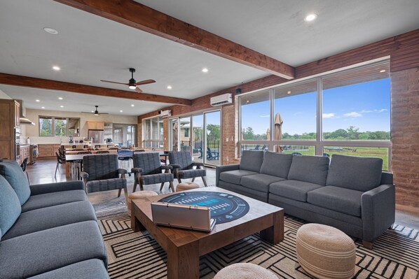 Great Room (1200 ft²) – Open concept living/dining/lounge area