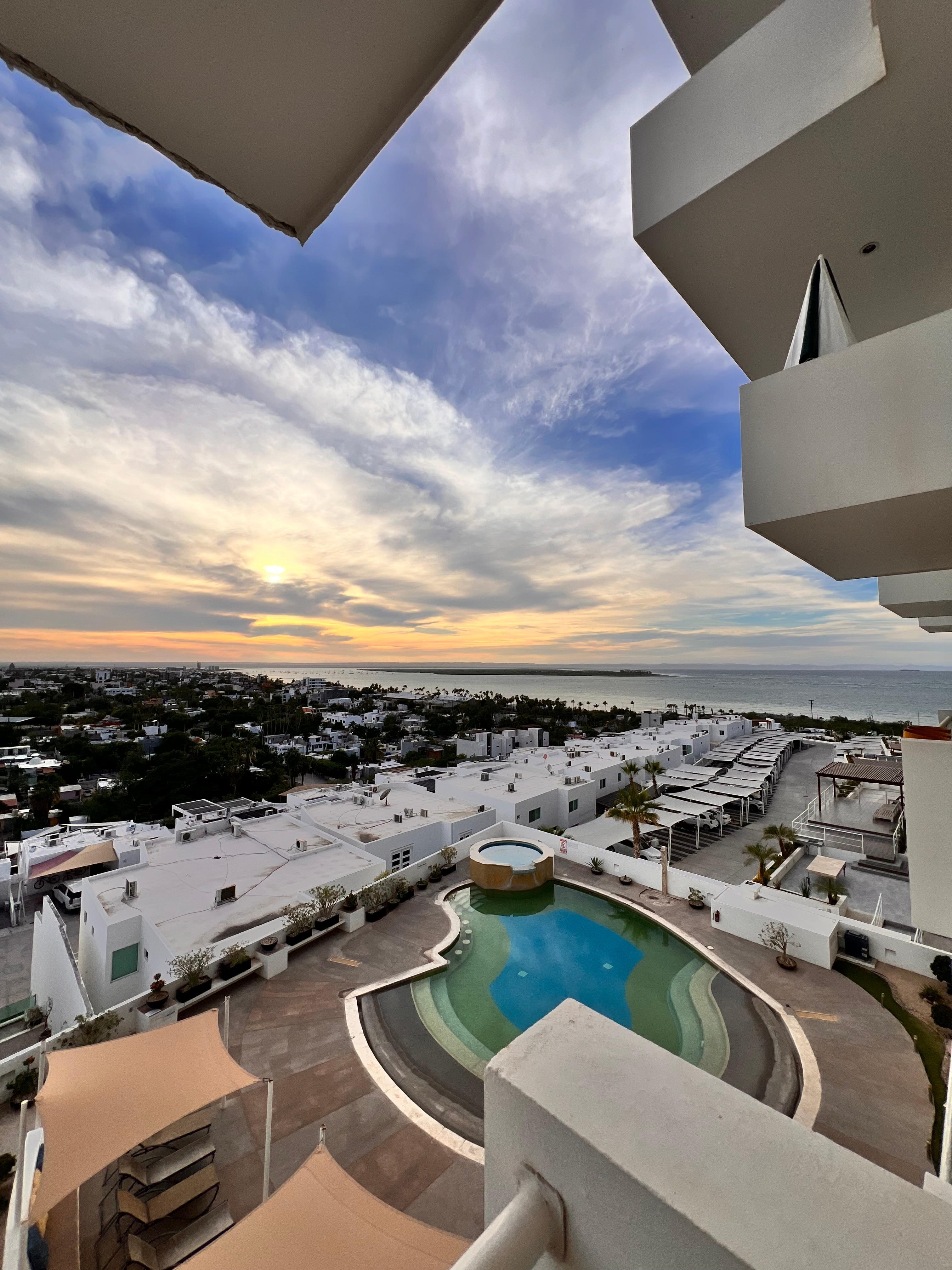 Wake up to breathtaking views of the bay and the Sea of Cortez from this 3rd-floor condo. Nestled in a secure, gated community, this space offers comfort, convenience, and a fantastic location near the best sights of La Paz. Enjoy the resort-style pool, explore nearby restaurants, or relax on your private balcony with an incredible sunset view.