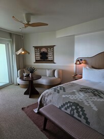 The room itself was beautiful and modern; however, the couch in our room had visible stains. The shower was extremely small—so much so that it was difficult to apply body wash without it being rinsed off immediately. Although a small stool was placed in the shower, it further reduced the already limited space.