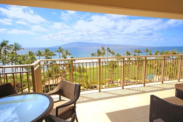 Slap af og nyd udsigten over Stillehavet og Maui nabo øerne fra din egen rummelig privat balkon - komfortabelt indrettet med sin egen moderne lounge møbler.