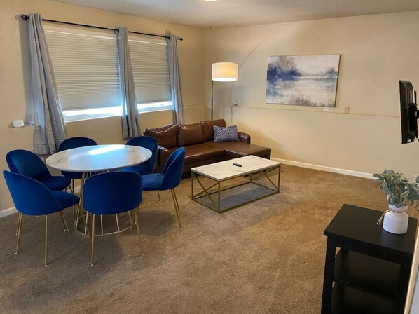 The apartment is located on the lower level at the end of an 8-plex. There are 5 short term rentals in the building and 3 long-term rentals.