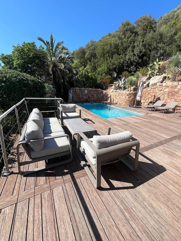 Terrasse 2 - poolside: havemøbler, solbadning