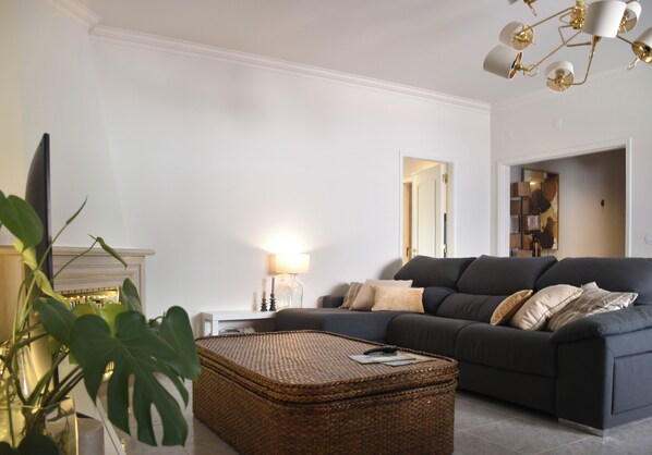 • Bright and airy living room with sofa, dining area for up to 6 people, and a 65’’ smart TV (Netflix, YouTube, Disney+, HBO, international channels)