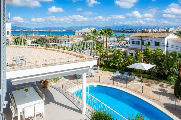 Bemærk venligst: Fester er ikke tilladt, ligesom gæster under 30 år (undtagen børn). Vi beder dig om at sænke lydstyrken fra klokken 23 ud af hensyn til naboerne og ikke længere høre nogen høj musik. Det rummelige, familievenlige Casa Son Veri de la Marina ligger lige bag Club Nàutic S'Arenal, kun få skridt fra den velkendte sandstrand S'Arenal. Ferieboligen er ideel til familier, der foretrækker en central beliggenhed og ønsker at tilbringe afslappende ferie i et luksuriøst miljø. Samlet set kan hytten rumme 12 voksne og 4 børn. I stueetagen finder du et barrierefri værelse med adgang til kælderen og en lille, uafhængig lejlighed med dobbeltseng, badeværelse og en lille stue til din au pair eller andet servicepersonale. I den 1. Gulvet hvor du kommer ind i huset, finder du en rummelig stue, et veludstyret køkken og 4 soveværelser: 2 med queen size seng og eget badeværelse, et med queen size seng og et med trille seng, ideel til børn. De sidste to nævnte værelser deler et badeværelse og desuden er der et andet toilet på denne etage. I den 2. Der er også 4 soveværelser: 2 med queen-size seng og badeværelse en suite, 1 med 2 enkeltsenge og 1 med udtræksseng. Igen deler de to sidstnævnte soveværelser et badeværelse. Yderligere faciliteter inkluderer Wi-Fi, aircondition på alle værelser, satellit-tv, 3 barnesenge og 2 højstole til spædbørn. I det pittoreske udendørsområde inviterer den overdækkede terrasse med havemøbler og grill, et bordtennisbord og en indhegnet 66 m² stor pool for at nyde ferien i den friske luft. Derudover i 1. På første sal er der en balkon med en fantastisk udsigt over omgivelserne og havet. Oplev absolut afslapning og ro på denne ejendom, som inviterer dig til at drømme og lader dig glemme stresset i hverdagen! Den ideelle beliggenhed for shopping, restauranter, barer, caféer og den lange sandstrand Playa de S'Arenal ligger inden for 5 minutters gang. Parkering til 2 biler er tilgængelig på ejendommen. Sengelinned og håndklæder er inkluderet i prisen. Husregler: - Brug af vores håndklæder på stranden er strengt forbudt. - Tjek venligst, når du forlader ejendommen, hvis alle lys og klimaanlægget er slukket. - Tøm altid skraldespanden regelmæssigt. - Der er ingen rygning i huset. - Kæledyr er ikke tilladt. - Ved tabte nøgler opkræves et gebyr på 100 €. Hver onsdag klokken 12 kommer gartnere til at se efter haven og rense poolen. Dette omfatter ikke rengøring af huset eller rengøring af terrassen eller grillen. - EcoTax koster 2,20 € pr. Person pr. Dag