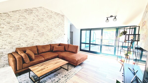 Welcome to our modern, vintage industrial style apartment! Perfect for couples, families and friends. Bright rooms, high ceilings, a fully equipped kitchen, comfortable beds and a balcony for relaxing moments. All not far from the lake, where famous artists give concerts in summer. Restaurants, cafes, pharmacies, shops and a modern bakery nearby. Enjoy the scenic landscape on walks and bike rides. Unforgettable stay guaranteed!