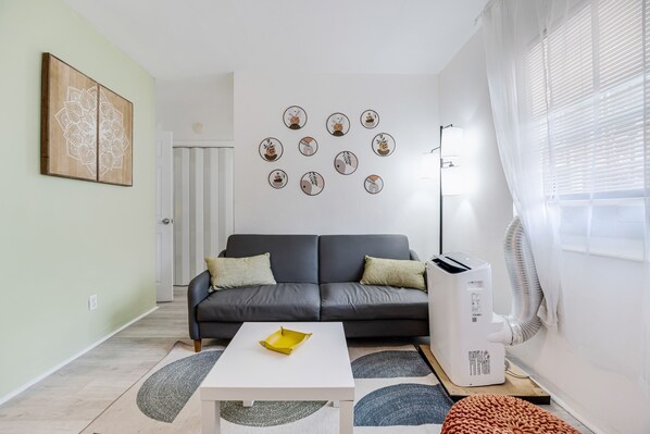 Billedgalleri for Relax in this peaceful 1BR/1BA apartment featuring a calming green accent wall, just minutes from Brickell and steps from Little Havana’s cafés & music. Includes Wi-Fi, A/C, smart TV, full kitchen, and free parking, a serene Miami vacation spot!