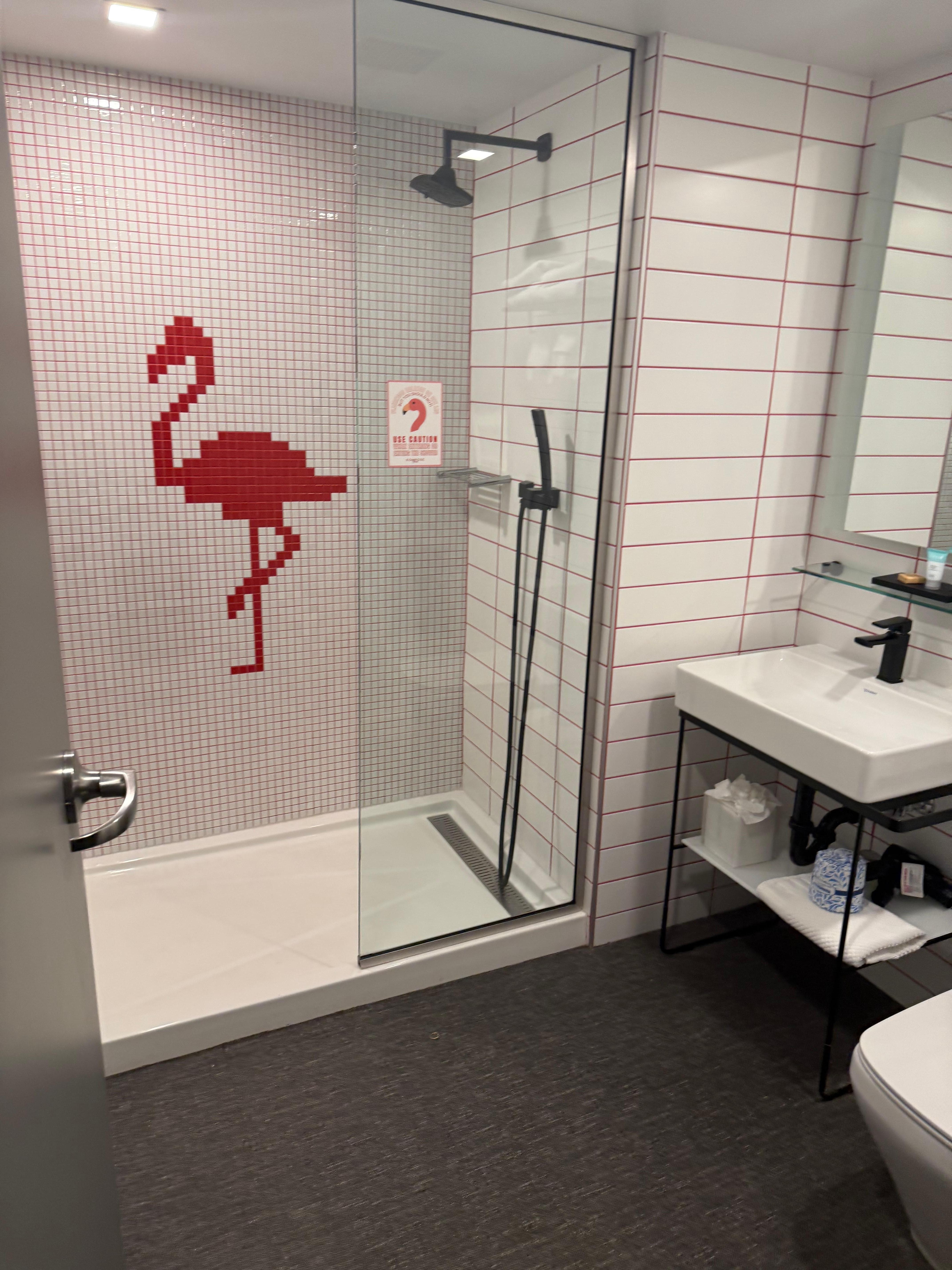 Friendly Staff but the layout of the room is a nightmare. Bathroom has this commercial carpet that’s get wet immediately and mildew around the shower corners. With a shower with no door slider and a toilet seat extremely unconventional. Also, the lights the in the room do not correspond at all. Was extremely disappointed with my stay.