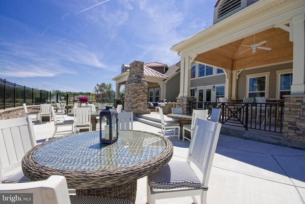- Patio/Outside: Loveseat, chairs, fire pit, grill. Grassy area off patio and on side of townhouse perfect for corn hole (included) and gatherings