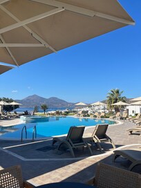 Dejlig morgenmad og skøn udsigt fra poolen