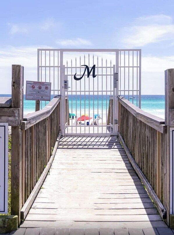 Three minute walk to the private beach. This is the perfect place for your beach vacation on the Emerald Coast! Bask on the soft, sugar sand white beach overlooking the beautiful emerald green waters of the Gulf of Mexico.