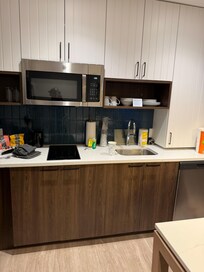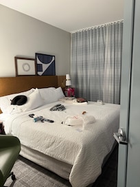 My family and I stayed for 3 nights. The staff was amazing. The Breakfast was pretty good, the draw back was they didn’t have paper products. But, other than that the food was enjoyable. I’m glad they provided the regular waffles, some other establishments have the smaller, sweeter waffles that are already prepared. Parking was pretty fair, we didn’t have to park far to walk. I would also like to add, that on the nights they have the evening gathering, that they add other varieties of foods, maybe fruit, crackers and cheese… etc. we didn’t take part take in it because we don’t eat Hummus, and we don’t drink wine or beer. So, I feel like other things should have been offered as well. Otherwise it was nice and inviting. Staff again Top Tier and very friendly. Our room was very nice and clean, but I would like to add, that housekeeping be sure to check under the fold out couch, because I retrieved a bottle of perfume and a small gun (Either a vape or a lighter from under the pullout couch. I have a teenage son, so I’m so glad that I access the furniture before I allow him to touch anything. Other than that everything else was clean. The walk in shower was a hit, but I think it needs something else on the shower floor to prevent slipping. Also, there is no place in the shower to place a bar of soap at or even to place a towel… I say this, because everyone can’t use what’s provided because of skin issues. Other than that, our stay was great and we will be back..