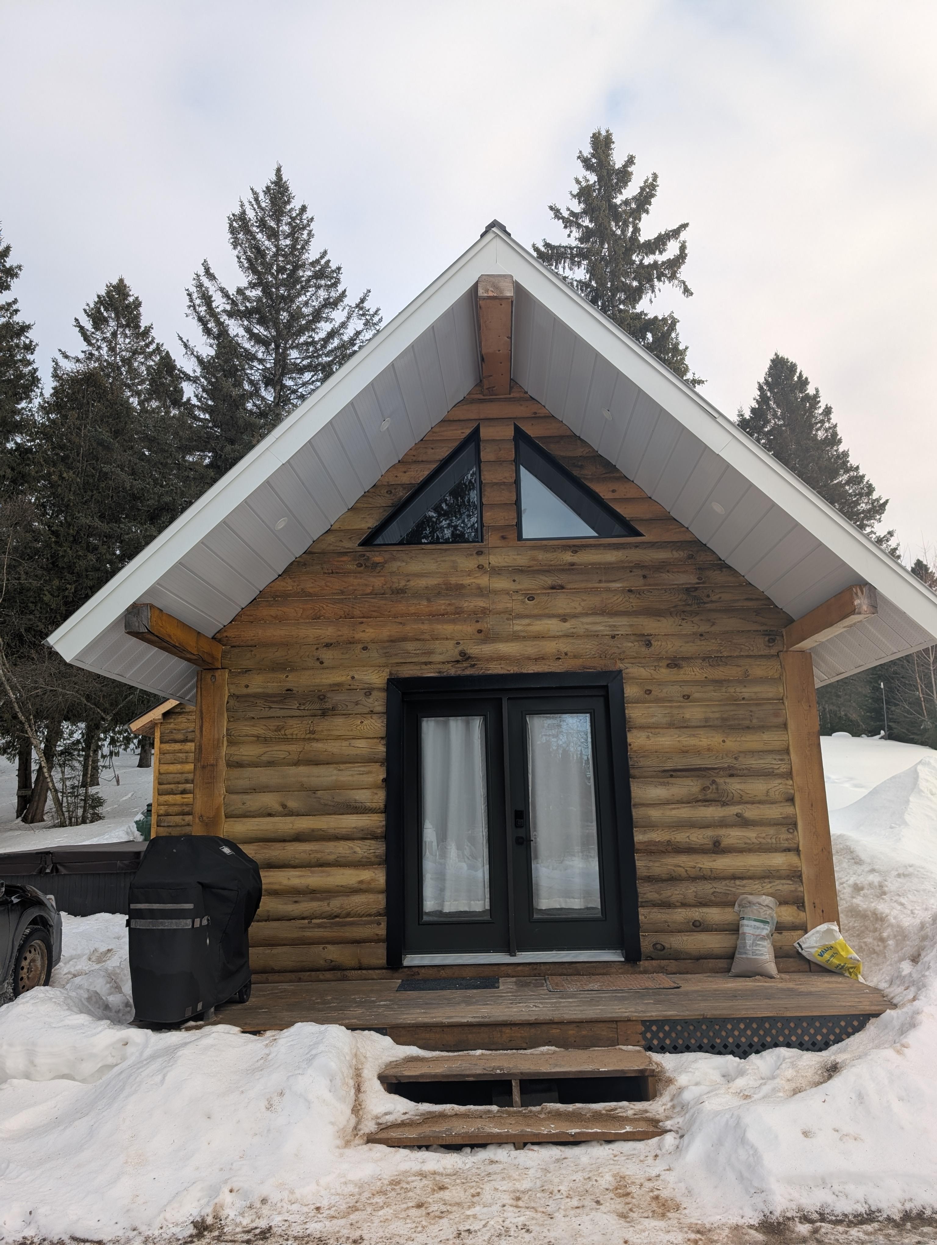 Anmeldelser af Log Cabin near Tremblant (5 min). Hot tub, lake access, safe roaming. Sleeps up 4