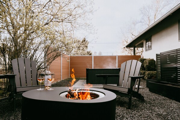 Swanky Speakeasy Stay-Hot Tub + Firepit-Minutes to Downtown har alt, hvad du behøver.