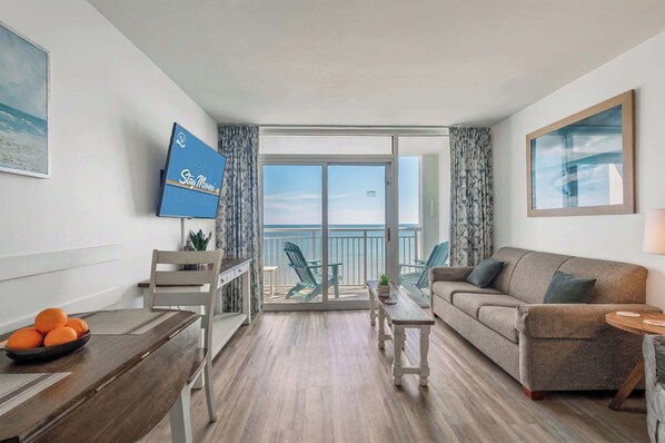 Located in the vibrant heart of Myrtle Beach, our condo is a prime spot for families or couples looking for memorable experiences. It’s designed to comfortably host up to four guests, providing the ideal backdrop for creating cherished memories. The addition of complimentary on-site garage parking, complete with a parking permit for our 1-bedroom Suites, ensures your visit is as smooth as the coastal breeze.