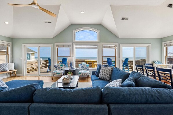 Det bliver ikke bedre end dette udsøgte, smukt indrettede hjem med hårdttræ og klinkegulve ... og en håndmalet vægmaleri i det åbne rummelige store rum! Du vil have rigelig plads til socialt og underholdende, og kokken i din familie vil være tilfreds med det store, veludstyrede køkken. Nyd havudsigten fra cabana- og observationsdækket - og når du er klar til en pause fra solen, kom ind i spillelokalet for at blive underholdt med et spil pool eller bare slappe af ved at lytte til musik eller se fjernsyn. Du behøver ikke at gå ovenpå til forfriskninger, da der er et køleskab i fuld størrelse, mikrobølgeovn og våde bar i spillelokalet - men selvom du skal gå tilbage ovenpå, tag bare elevatoren! (Hjemmet er handicapvenligt.) Med så meget at byde på, vil du ikke fortryde at gøre dette luksuriøse tilbagetog dit næste Outer Banks feriemål! Bonus ... ejendom # 5515 ligger lige ved siden af! Eventgebyr: $ 1500