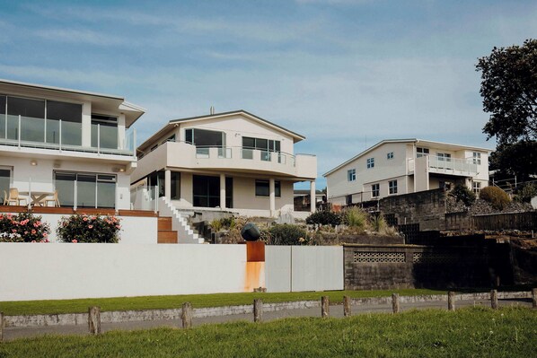 Wanaka Beachhouse offers an exceptional beachfront experience right on the Bell Block beachfront in New Plymouth. This stunning holiday home features unobstructed, breathtaking waterfront views, making it the perfect getaway for those looking to relax by the sea. The property connects you to the Scenic Coastal Walkway, allowing for scenic cycling and walking past some of New Plymouth's best swimming beaches, with the CBD just a thirty-minute stroll away.