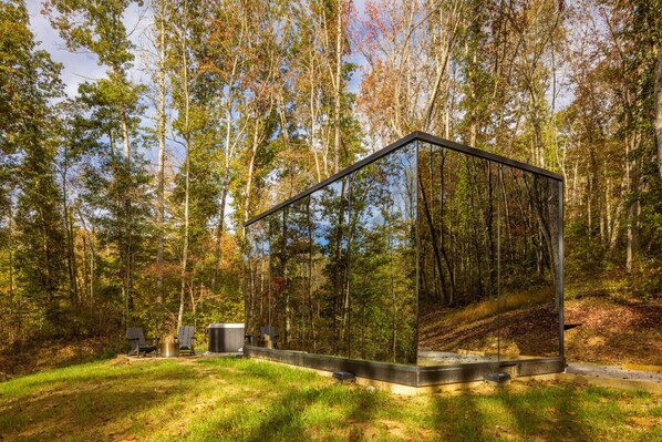 Romantic Mirrored Cabin w/ Hot Tub & Sauna on 17 Private Acres