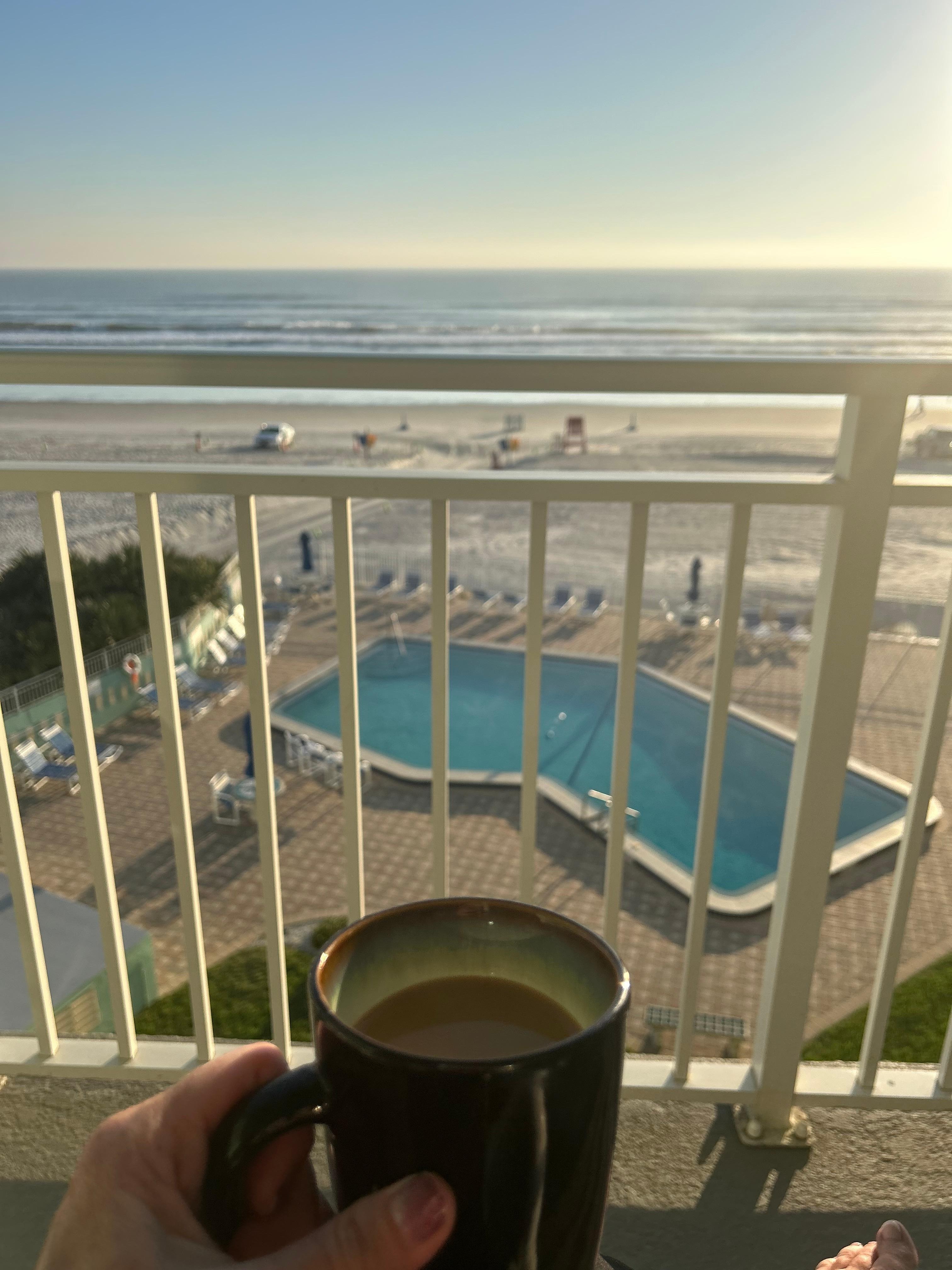 Uniquely 3 blocks north of famous Flagler Ave. Spectacular ocean front balcony with the comfortable, easy to get in and out of furniture. Incredible views all the way to Ponce Inlet. Effortless beach access by the pool with freshwater shower and rinse off. 2-bedroom 2- bath in one of the best complexes in NSB. Sit in the 2 leather recliners overlooking the waves crashing on the beach. Watch 1 of the 3 big screen tvs. Enjoy luxurious linens, pillows, cookware, furniture and furnishings. The condo is engulfed by the white sand, beautiful blue/green waters and sunshine pouring into the living area and master bedroom. Work in the kitchen is mesmerizing as you look out over the Atlantic Ocean at the horizon. Dolphins, turtles, birds, surfers, lifeguards and people watching at its best. So clean and smells like heaven. Stargazing is a must after having a wonderful meal of fresh seafood. Cook at the condo, stroll down the sidewalk to Flagler Ave. or drive to one of the many waterfront dining establishments both oceanfront and on the intracoastal waterway. Canal St. is a must for shopping, wandering and dining. Come relax and soak up the sun. Then sleep so soundly you wake up ready to play all day, FUN!