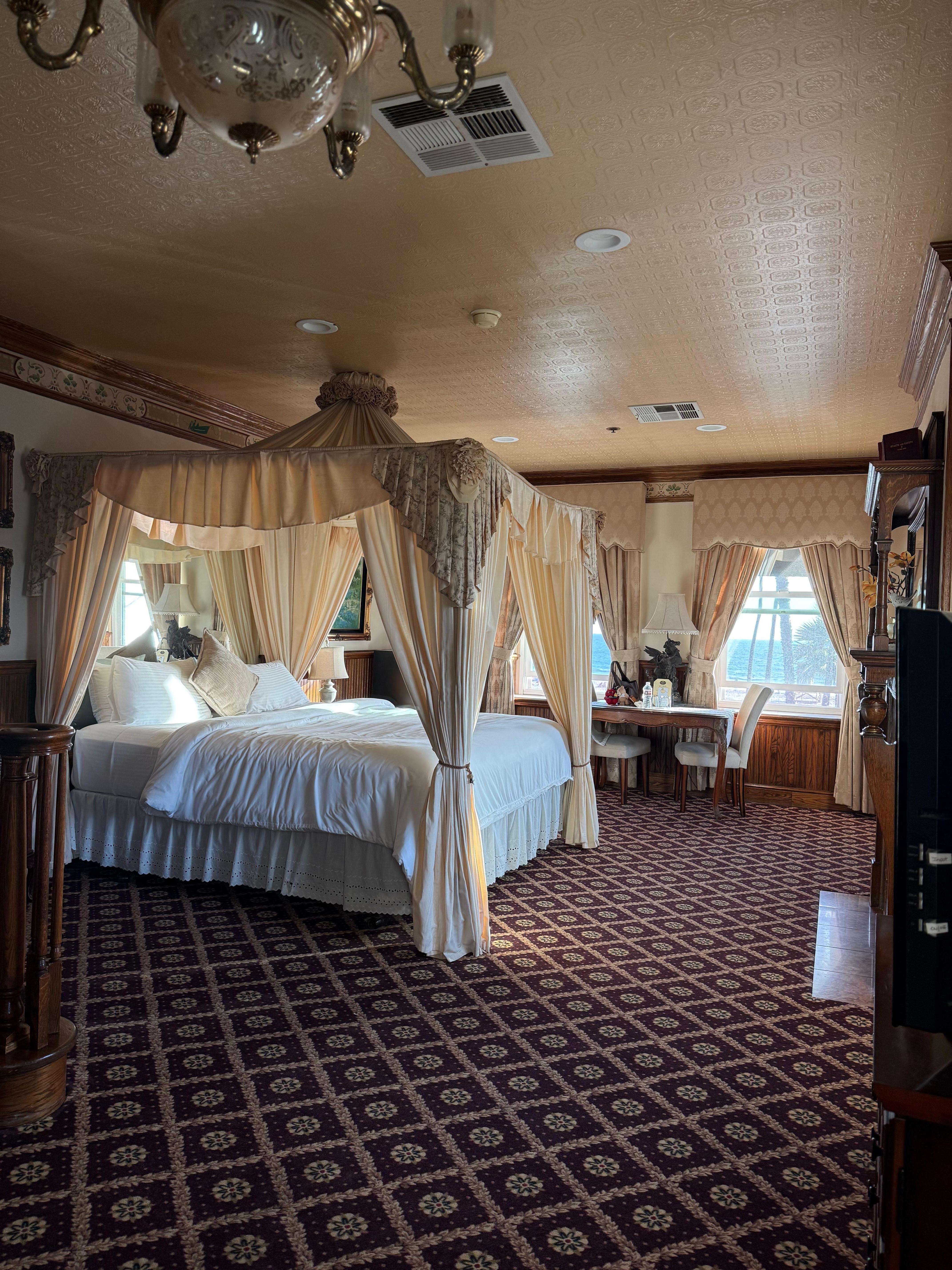 This hotel was so adorable. Beautifully antique. Our room was cozy and the fireplace was warm and inviting. Our view of the ocean from our room was beautiful, and even better from the roof lounge area. Breakfast was lovely. I enjoyed the chia pudding! What a unique and wonderful experience!