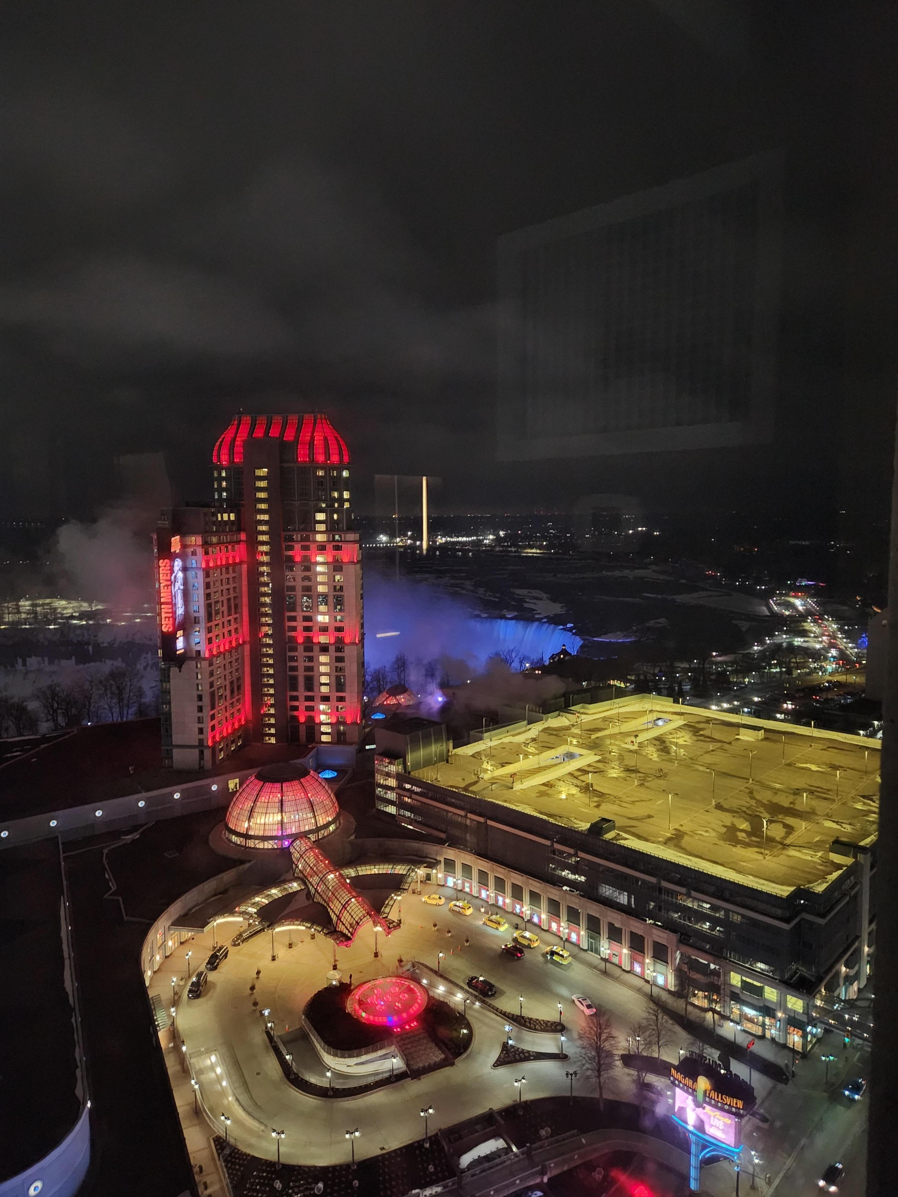 Fallsview room with whirpool was available for a little extra cost. Definitely worth the view. Although parking at the hotel was expensive, you can find cheaper options less than a 2 mins walk away. Hotel is also connected to fallsview casino and has great selection of restaurants nearby but are on the higher end in regards to prices.