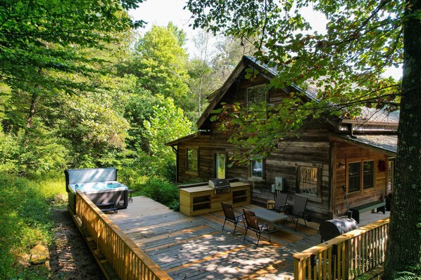 Driving into the property is a sight to behold! As the cabin comes into view, you will be awestruck by the expansive, picturesque acreage. The ten surrounding acres offer multiple outdoor activity options for you, your family, or your friends. In the back awaits a children's playset and many outdoor games—badminton, croquet, horseshoes, and even a wraparound deck. You will find beautiful scenery wherever you sit while relaxing. When you are ready, head out on the scenic hiking and biking trails.