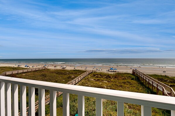 Coastal condo with ocean views, grilling area, and balcony