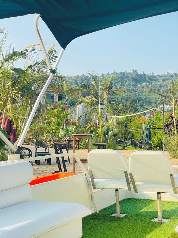 NOVABEACH Resort with a scenic view of lake kivu.
