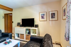 This property features a private balcony and access to a shared outdoor area with an open terrace.