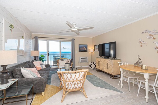 Modern and remodeled 1BD and 1.5 Bath direct Ocean Front condo with Free WiFi and linens included. Vacation at the Shore with Shoreline Properties
