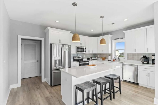 Welcome to By the Sea, a stunning 5-bedroom, 5-bathroom vacation rental that comfortably accommodates up to 13 guests, making it the perfect getaway for large families or groups of friends. Nestled along the serene coastline, this spacious retreat offers a perfect blend of relaxation and luxury.