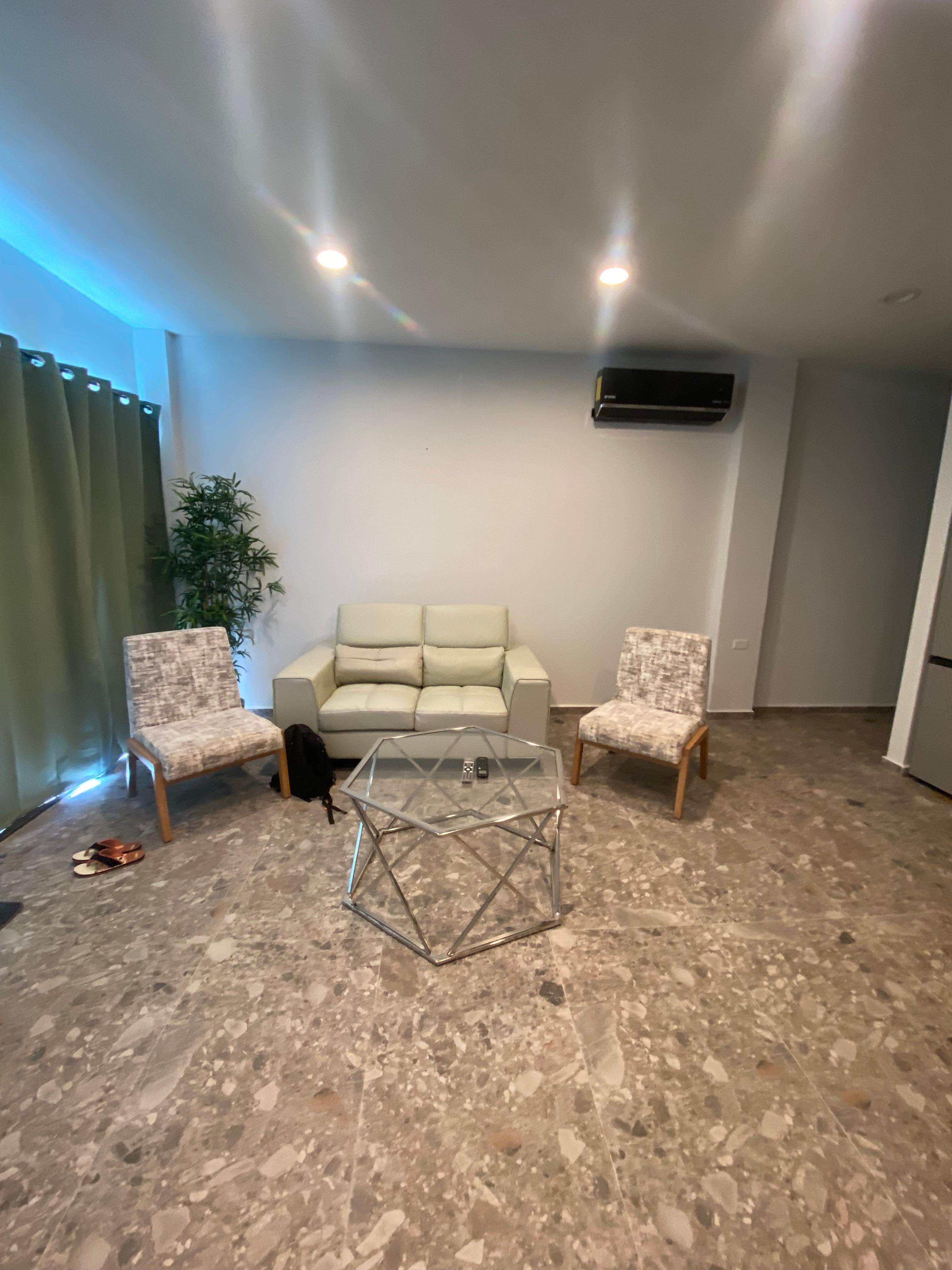 Our newly designed 2-bedroom apartment is perfect for up to 4 guests, offering a stylish and relaxing stay. Enjoy a fully equipped kitchen, comfortable sleeping area, modern bathroom, air conditioning, and a Smart TV with Wi-Fi—ideal for vacationers and remote workers alike.