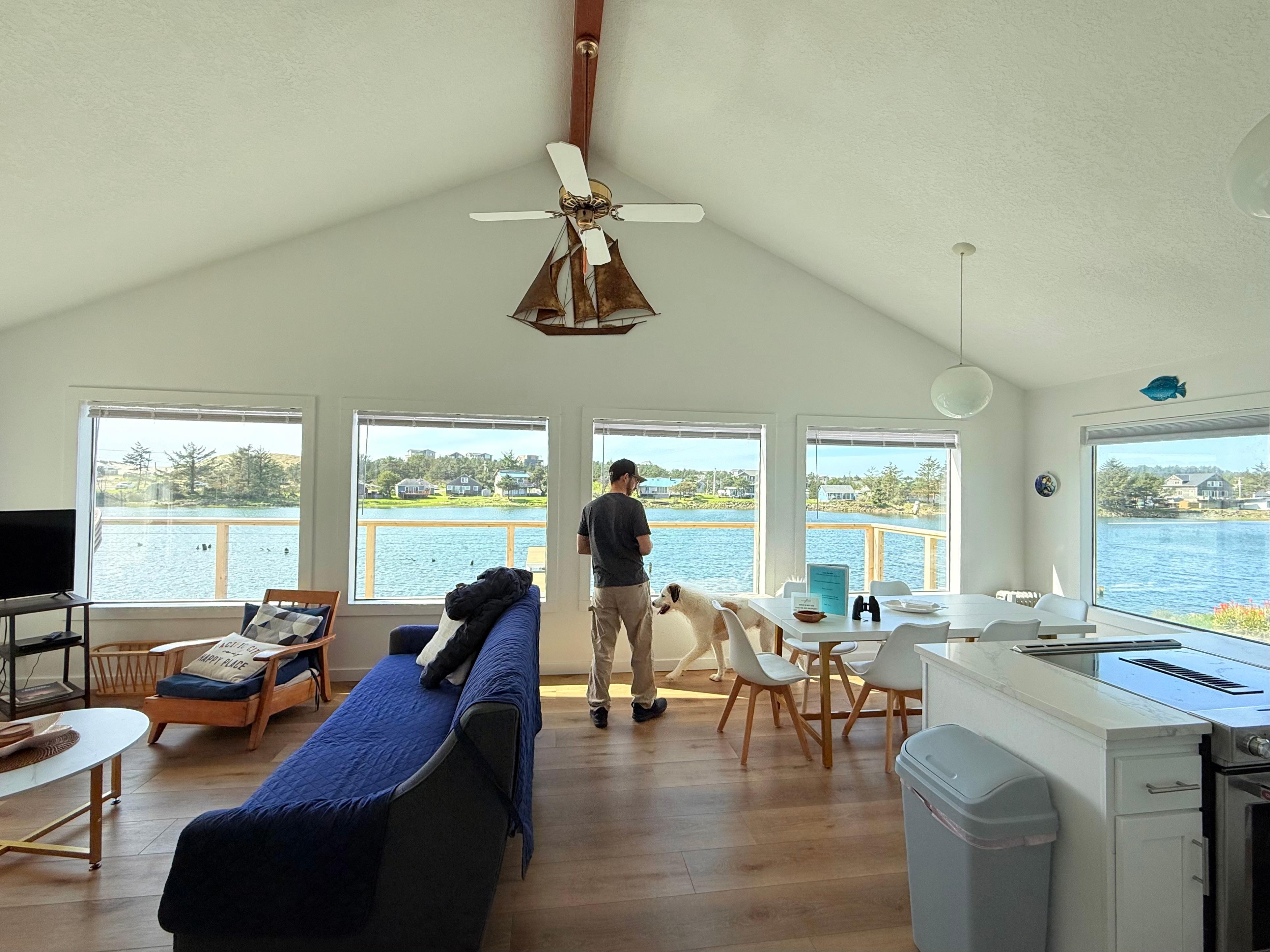 Velkommen til Casa Del Rio beliggende direkte langs Pacific Citys vilde og naturskønne Nestucca-flod og også inden for gåafstand til adgang til stranden. Tæt på restauranter, kajak og surfudlejning. Kom og bo på Casa Del Rio, hvor du finder en baghaven tilbagetog med et ildsted, propan-grill og masser af sæder, hvor alle kan opleve det enkle liv ved vandkanten. Lounge i solen på den ekspansive græsplæne, eller sidde under dækket og nyd drinks og et måltid udendørs. Se efter en overflod af vilde dyr (ørne, fiskeørn, hjorte og vandfugle) fra det store vestvendte dæk, eller bare slap af og få fat på den bog, du har ment at læse. Når du først er inde, føles udsigten over floden som om du er på vandet. Der er en lys åben stue, spisestue og køkkenplan, der giver alle mulighed for at samles og dele smukke øjeblikke. Køkkenet er fuldt udstyret, og der er et tv i stuen. Der er to soveværelser, det ene med en king size seng og det andet med en queensize seng og et komplet bad placeret på øverste niveau. På det lavere niveau finder du det tredje soveværelse med udsigt over floden, en tvilling over en fuld størrelse seng plus en anden dobbelt seng, tv, et komplet bad og en fuld størrelse vaskerum. Casa Del Rio har alt det nødvendige for et behageligt ophold. Ligger også på det nederste niveau er vestibyle, som åbner ud til baghaven og har et minikøleskab for at holde dine drinks kolde.