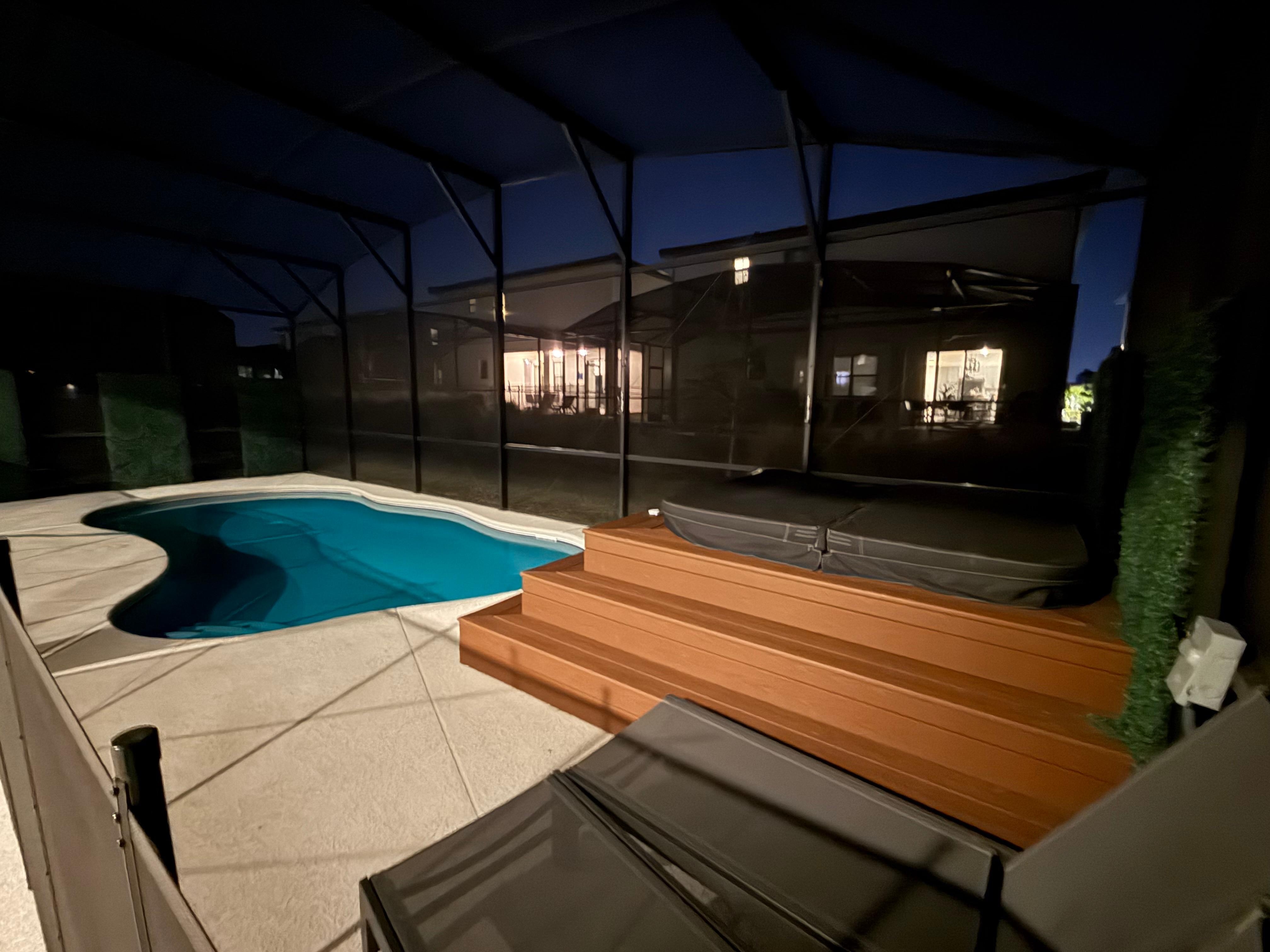 The home was great for what we needed. The rooms downstairs was perfect for 87 year old grandmother, and cousins. The rooms were very comfortable, the 8 bathrooms were the icing on the cake. We enjoyed the private pool & jacuzzi, and the screened patio was nice. It allowed for your privacy as well as being neighborly with other families across the way. It was alson convenient to the home my other family members were staying. We are are looking forward to returning.