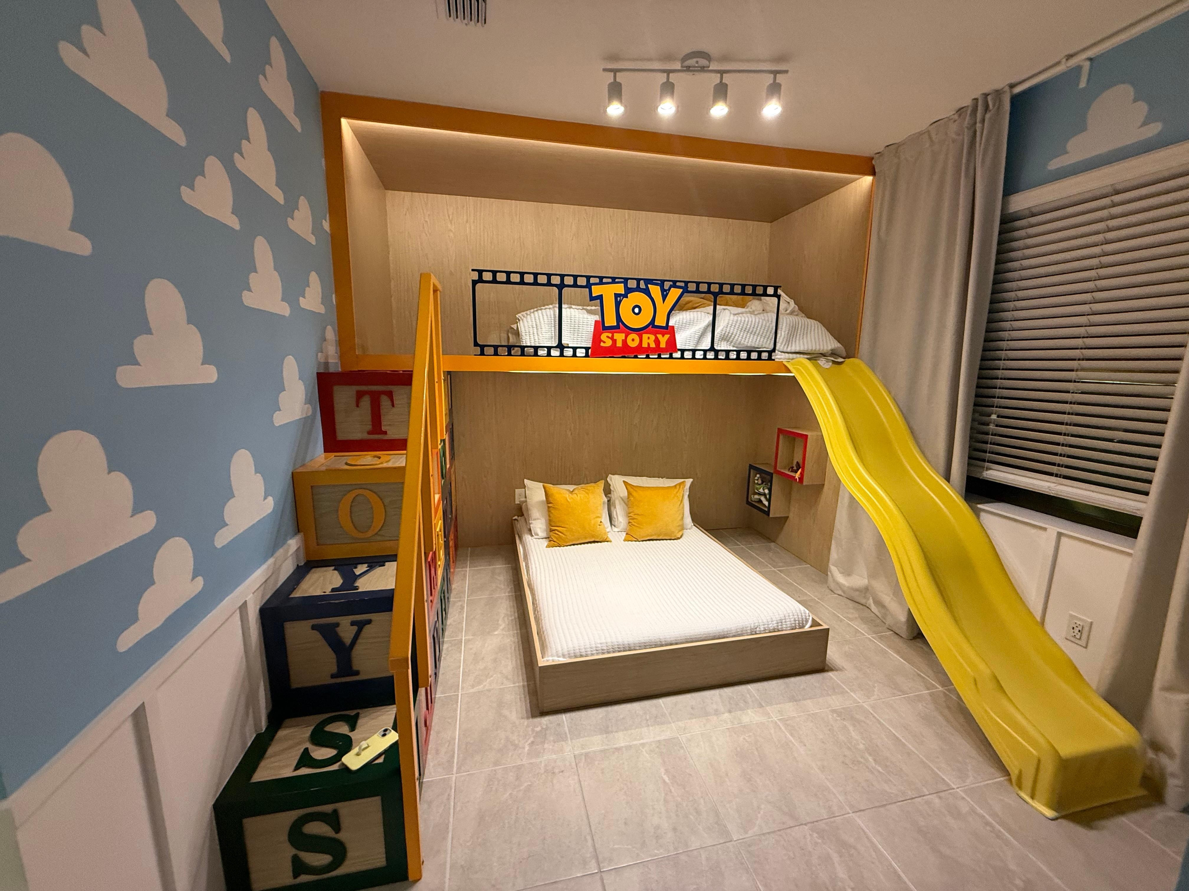 • 1 Suite with 1 Bunk Bed with one Full and one Twin-sized mattress (Toy Story);