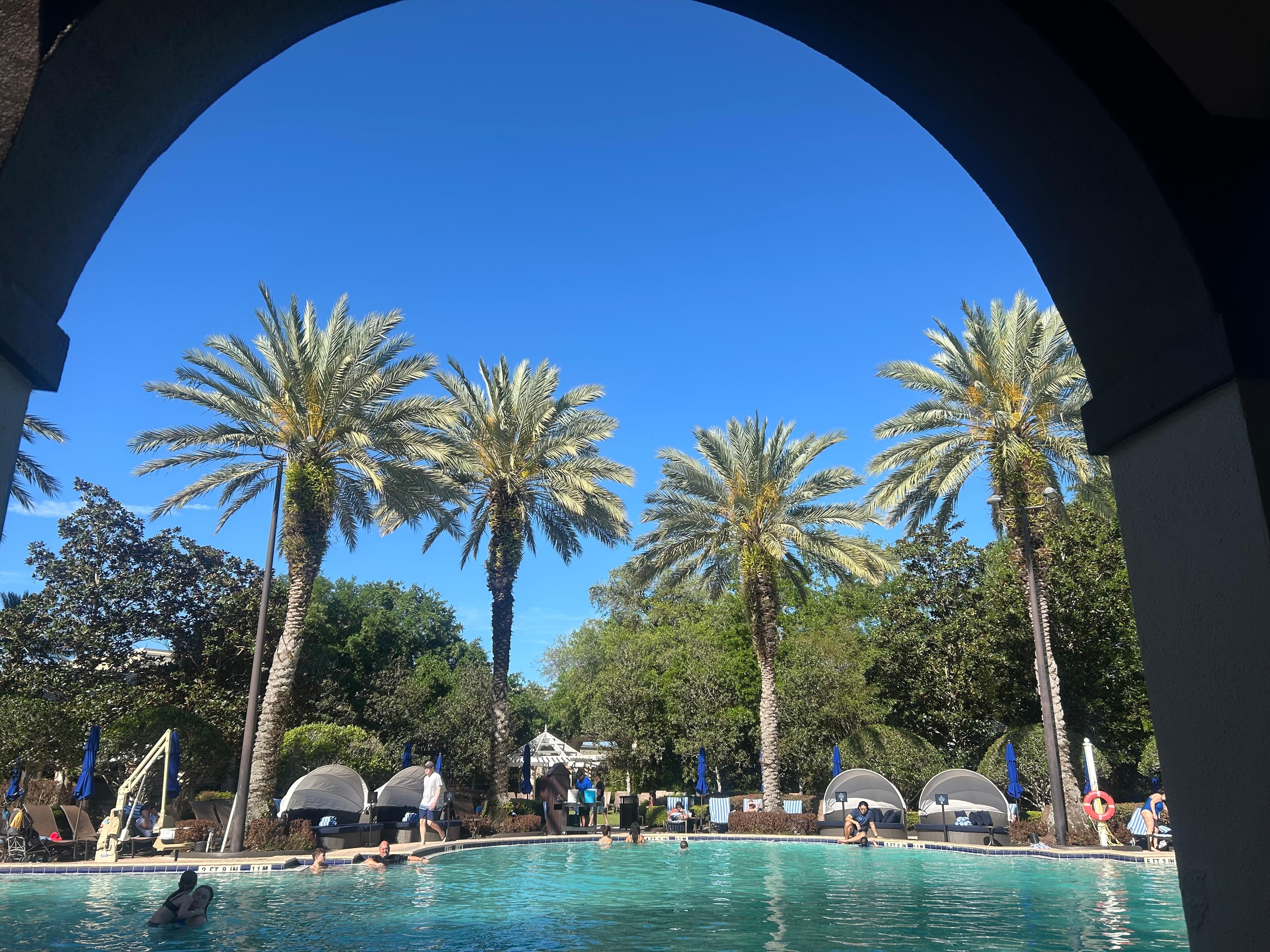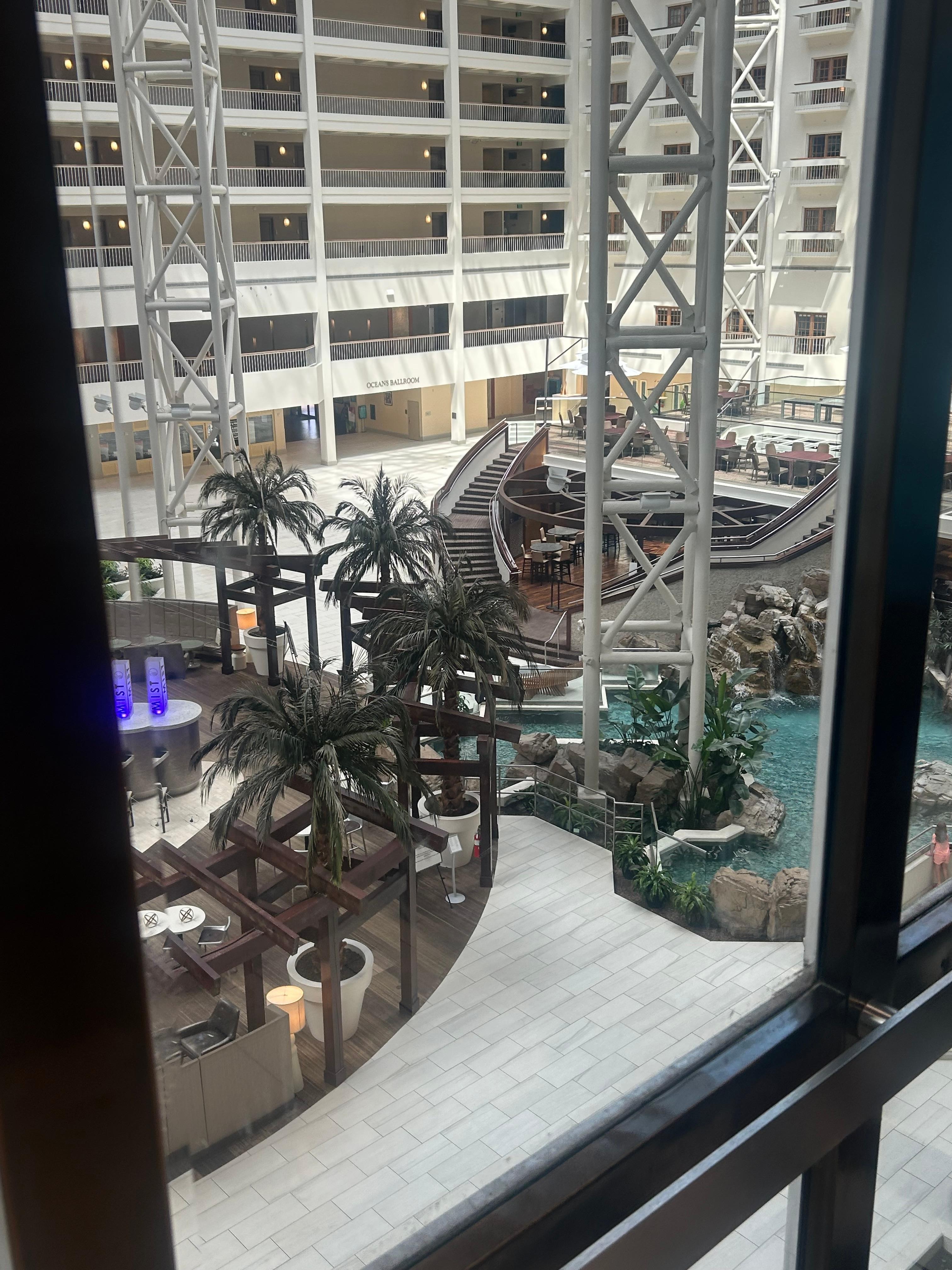 The hotel looks beautiful inside, the atrium and public areas are really impressive and bougie. However, the rooms didn’t live up to the lobby. The beds were super stiff, pillows were flat and uncomfortable, and the AC was only mediocre (struggled to keep the room cool). The $40/night self-parking fee was ridiculous, especially when we could have just Uber’d from Disney Springs’ free parking and saved money. Overall, it felt overpriced for what you actually get in the rooms. Nice common areas, but the sleeping experience was disappointing. Highly unlikely we return. Too many other options.