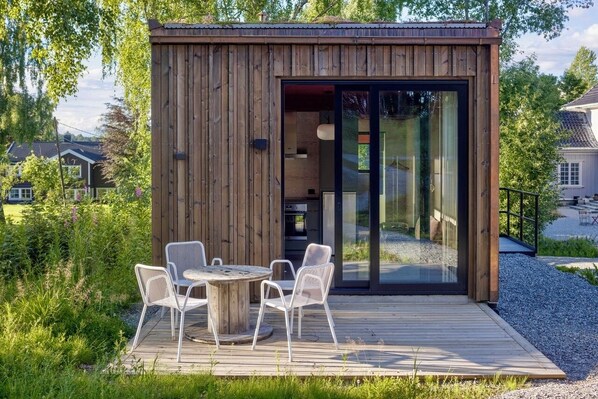 Familielejlighed - terrasse - udsigt til have
