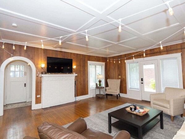 Cozy living area with seating & Smart TV